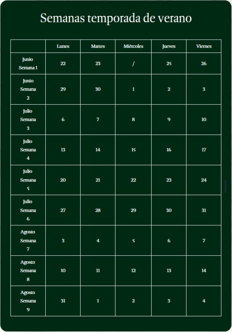 Semanas temporada de verano